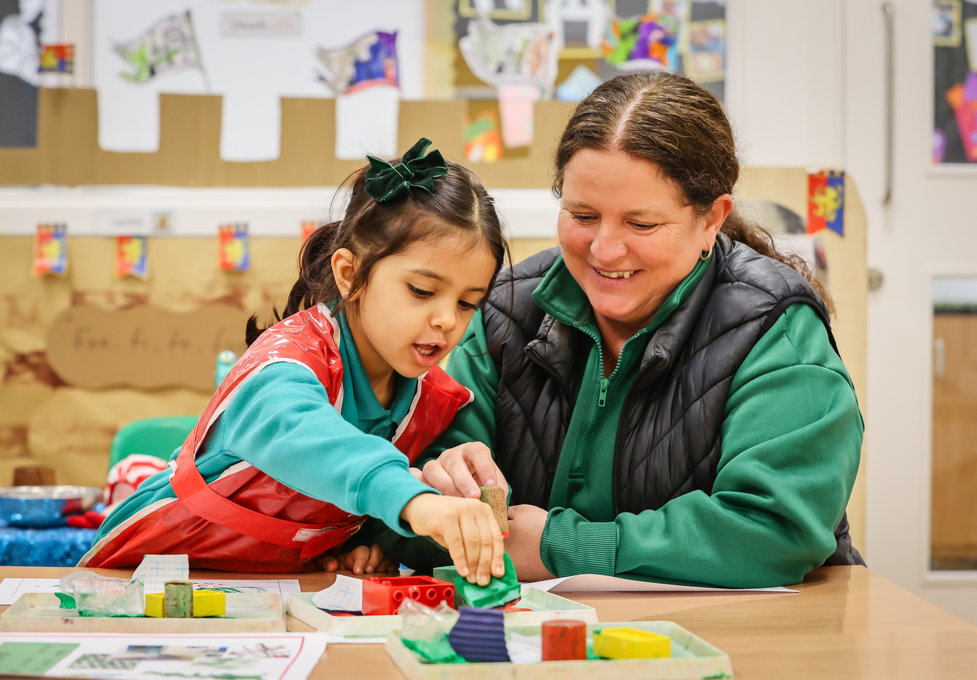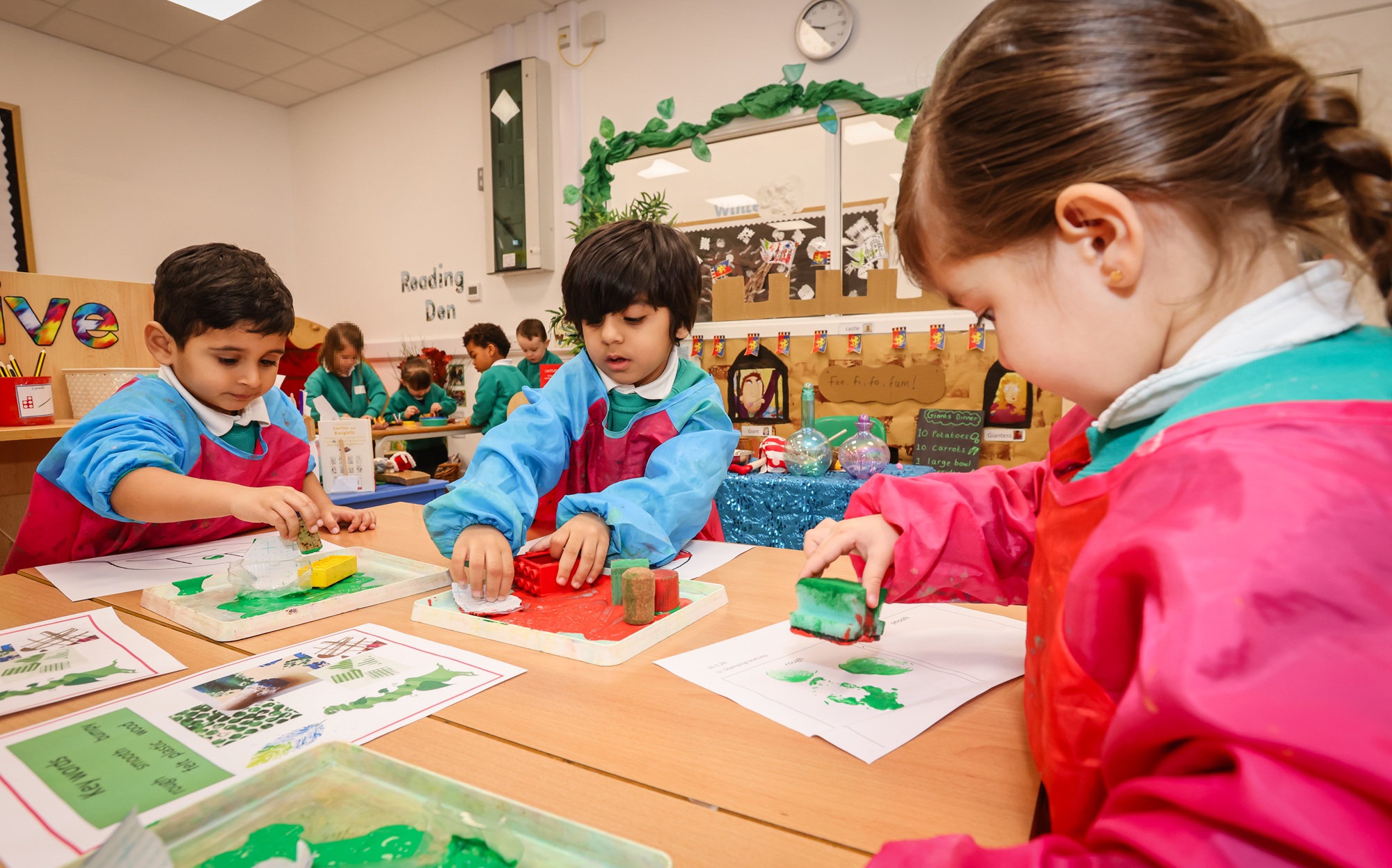 We provide the children with rich opportunities to learn through whole class teaching, small group activities and through purposeful play. We use high quality stories to engage the children, teach them new vocabulary and support them in becoming keen emergent readers and writers. Our Nursery team supports the children by playing alongside them, developing their language and moving their learning forward with questioning and discussion.